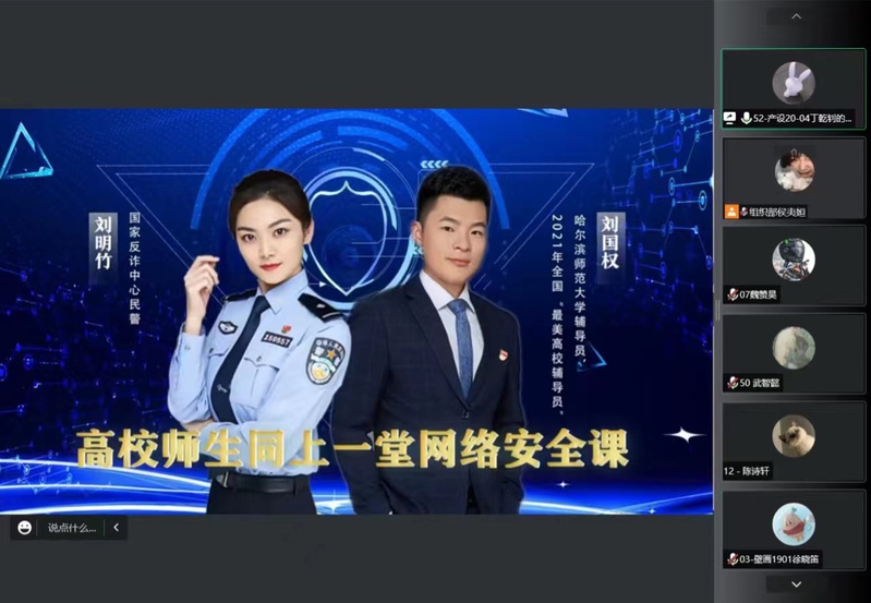 本次课程采取线上发布课程的形式,邀请公安干警、辅导员代表从学生网络安全意识树立、个人信息保护和防范电信诈骗等维度共同打造一堂面向全国师生的网络安全公开课,内容涉及校园贷、客服诈骗、非法刷单、贩卖个人信息、网络交友诈骗等,让同学们深刻了解了沉溺网络的危害,提醒学生一定加强数据安全和个人信息保护,提升网络安全意识和防护技能,预防网络诈骗。