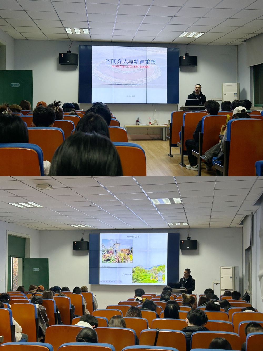 11月23日晚,我院在东四楼301召开了研究生系列讲座的第十四场,本次讲座由吴斌副教授主讲,讲座主题为“空间介入与精神重塑——第四届‘国际公共艺术奖’案例观察”,全体研究生参与其中,反响热烈。