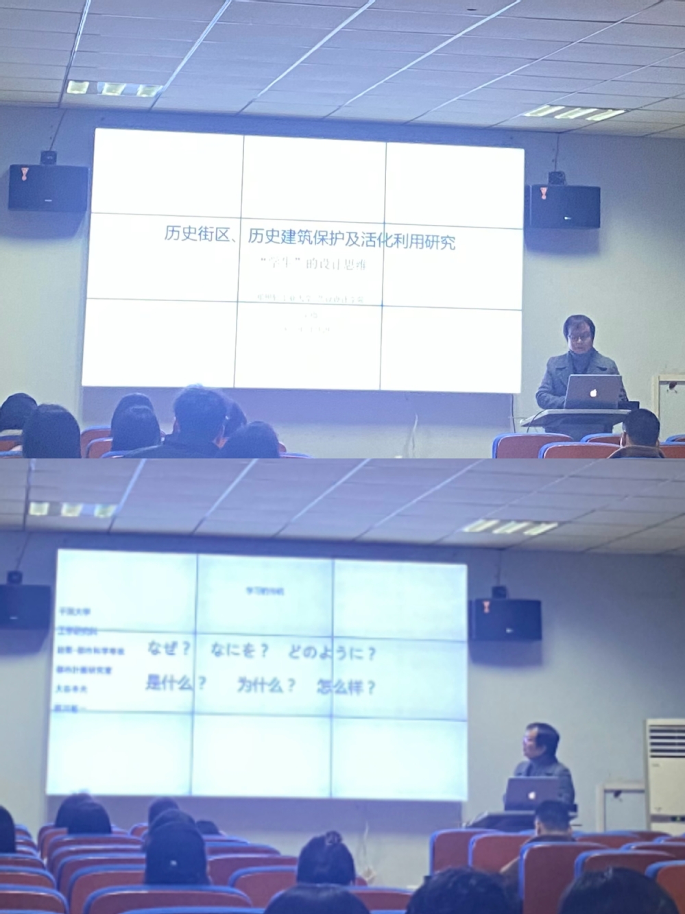 宗迅博士在东四楼301开展一场名为“历史街区、历史建筑保护及活化利用研究”的学术讲座,全体研究生参与,反响热烈。