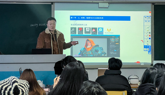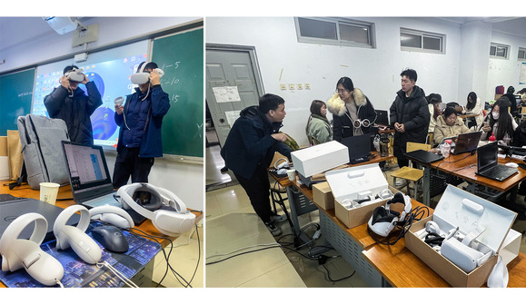 李扣扣和徐文娇总监为同学们分享了非程序方向的游戏开发经验。介绍不同类型游戏开发个人或团队所需具备的技能和技术要点,以及各个游戏引擎的优缺点、商用收费规则和就业情况。总结了开发、设计、管理独立游戏的思路与经验。分享了郑州宸冠软件科技有限公司研发的两款全球下载破千万的游戏项目: “Ninja's Creed”、 “Sniper Honor”。从前期的游戏策划、游戏美术设计、游戏程序开发、产品宣发等各个环节做出了详细的讲解。讲座结束后的互动环节中,同学们带上交互头显设备,更深切的感受到虚拟现实项目的沉浸感与临场感。