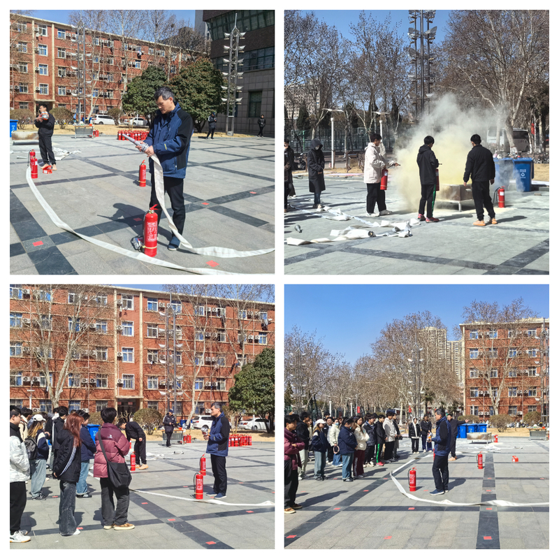 在演练过程中,保卫处消防科周老师向现场师生介绍了学校各种灭火器的分布情况,并详细讲解了不同种类灭火器的规范使用方法。在实际操作环节,师生逐一操作灭火器,在周老师的指导下,对准火源,冷静处理,按照正确的使用方法,扑灭了火源。演练结束后,周老师表示:“希望师生能够积极参与这样的灭火演练,提高自身的应急处置能力,在突发情况下能够冷静应对,及时扑灭初期火灾。”参与演练的同学表示:“通过这次消防演练,我学会了正确使用灭火器的方法,增强了对消防知识的了解,为自身的安全提供了保障。”