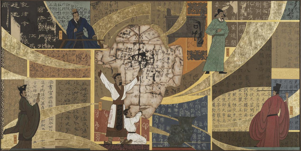 《灿烂中原·文明华章-书艺含章》 126×256CM 重彩壁画 2023-2024年