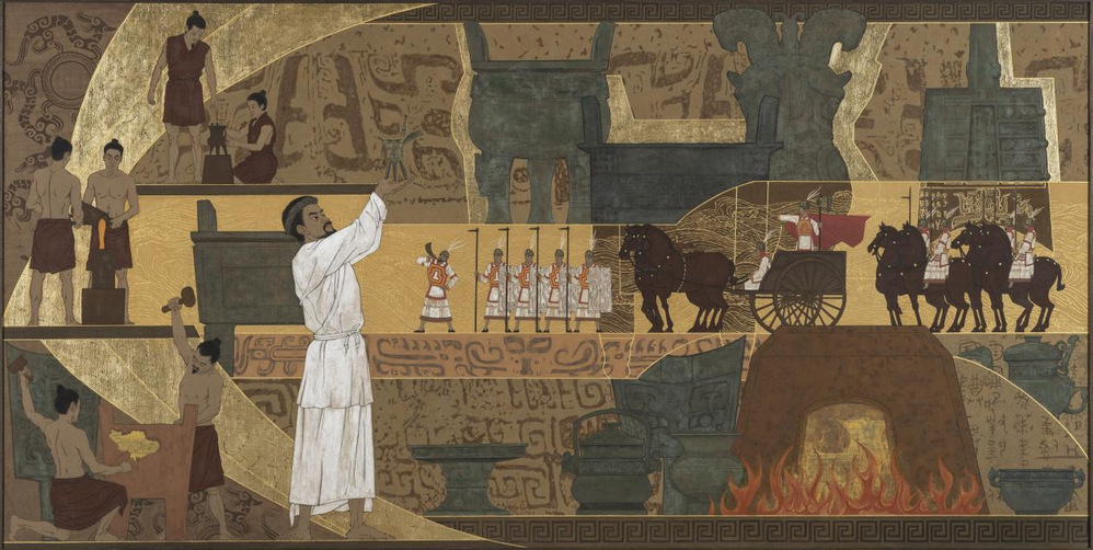 《灿烂中原·文明华章-青铜著史》 126×256CM 重彩壁画 2023-2024年