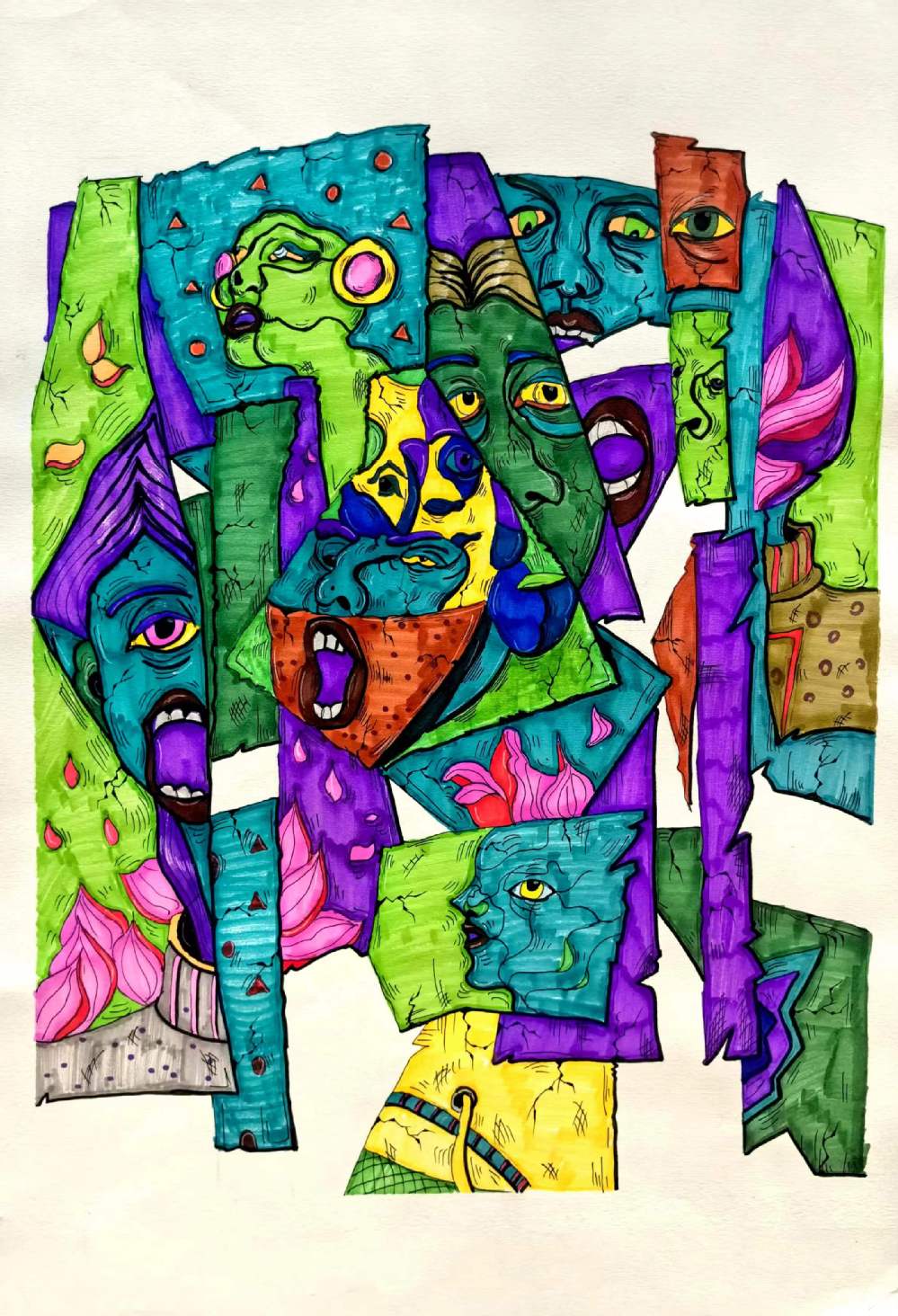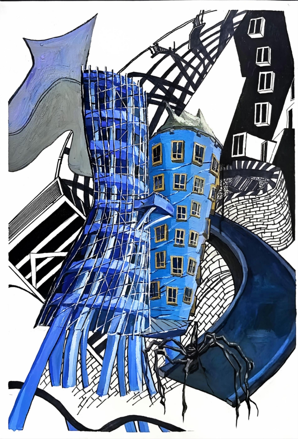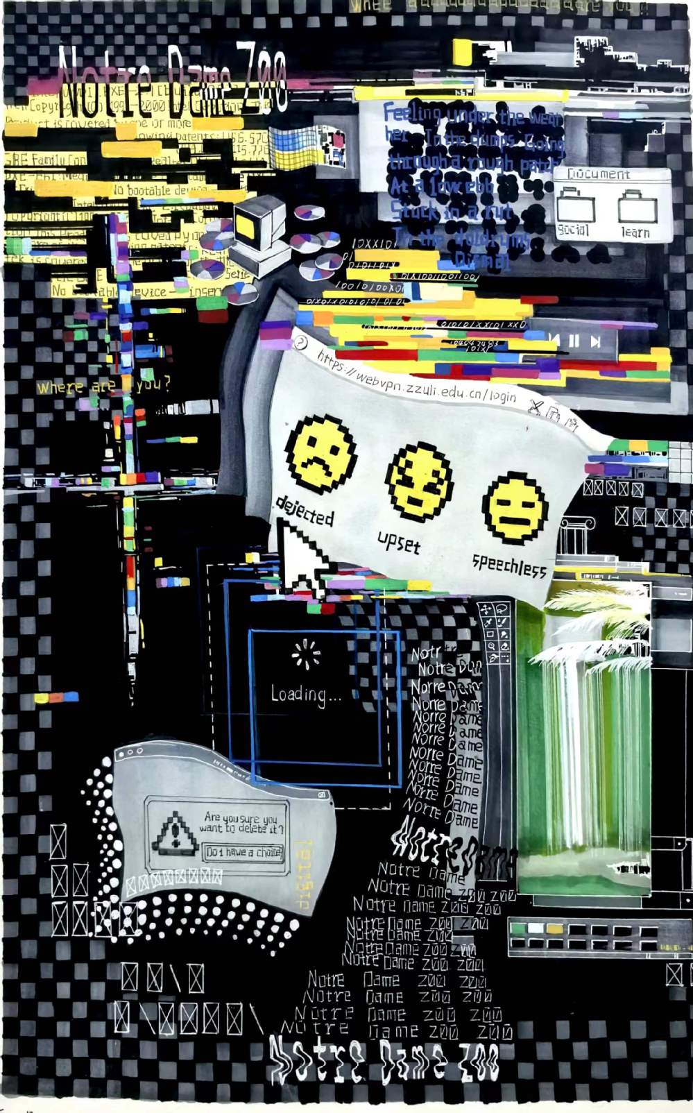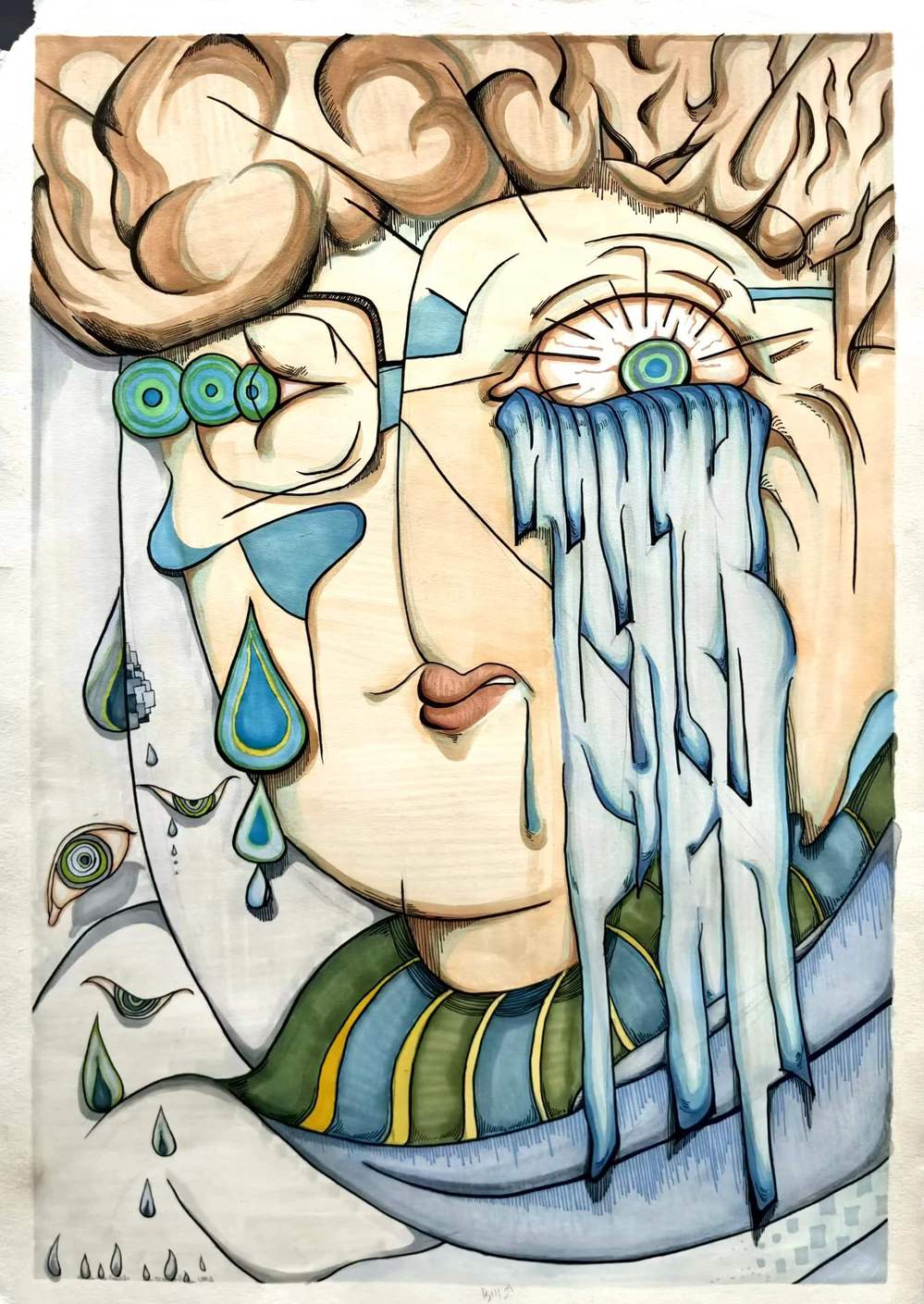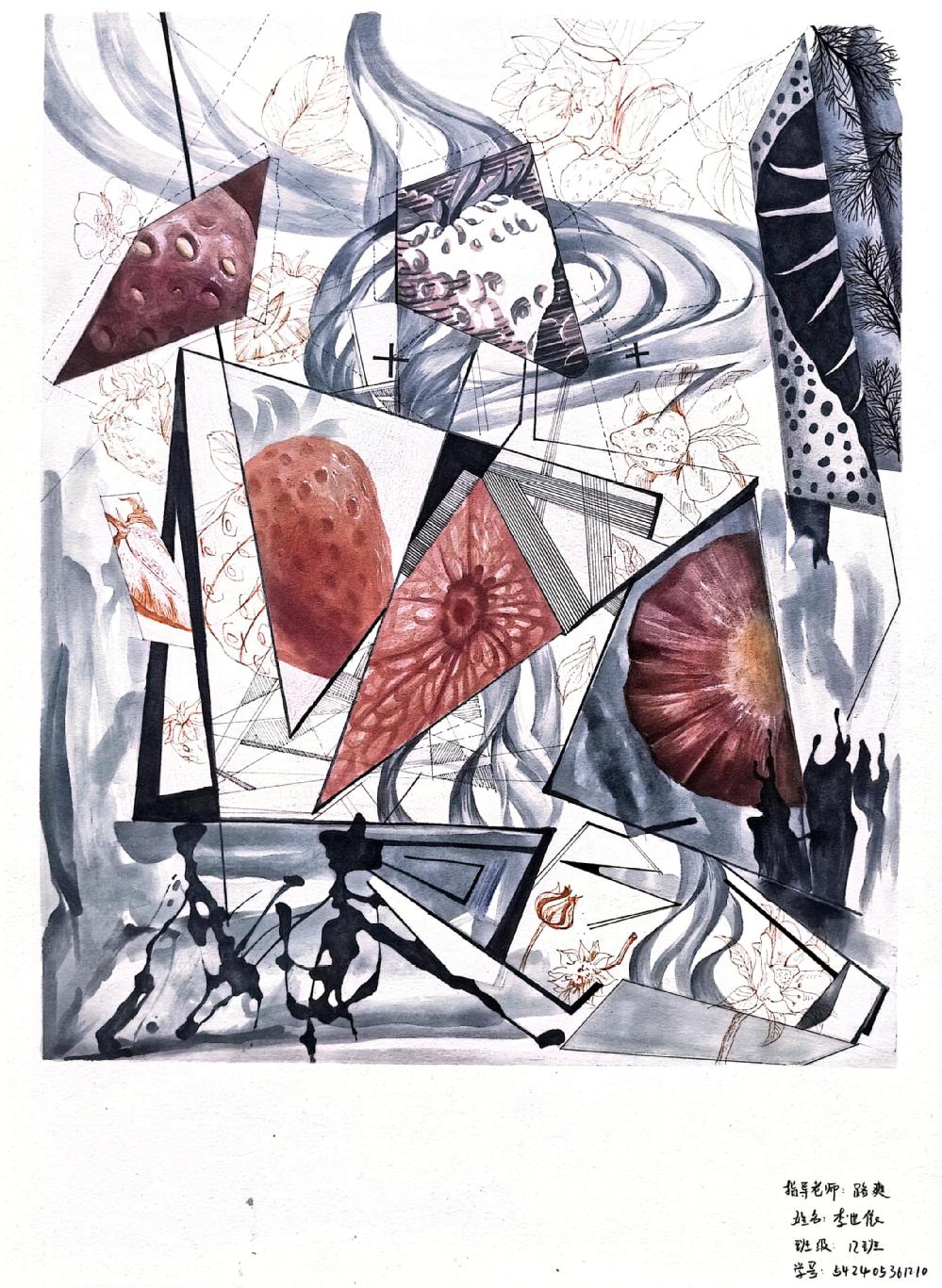 工具:水粉颜料、水彩、脱胶颜料、拼贴、肌理等