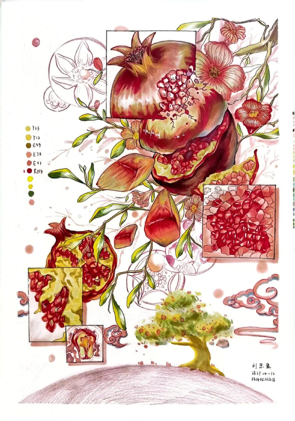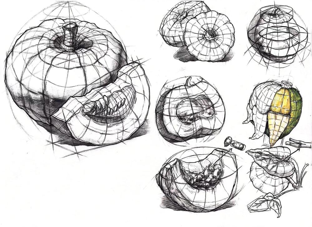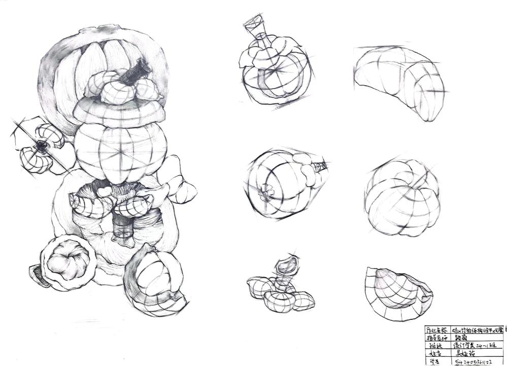 要求:延续表象作业中选择的自然界中的任一事物,或者自然界中的任何一种事物,进行除去表皮外不同角度,视角的结构分析与记录。记录该事物的结构之美,不同视角的细节之美。