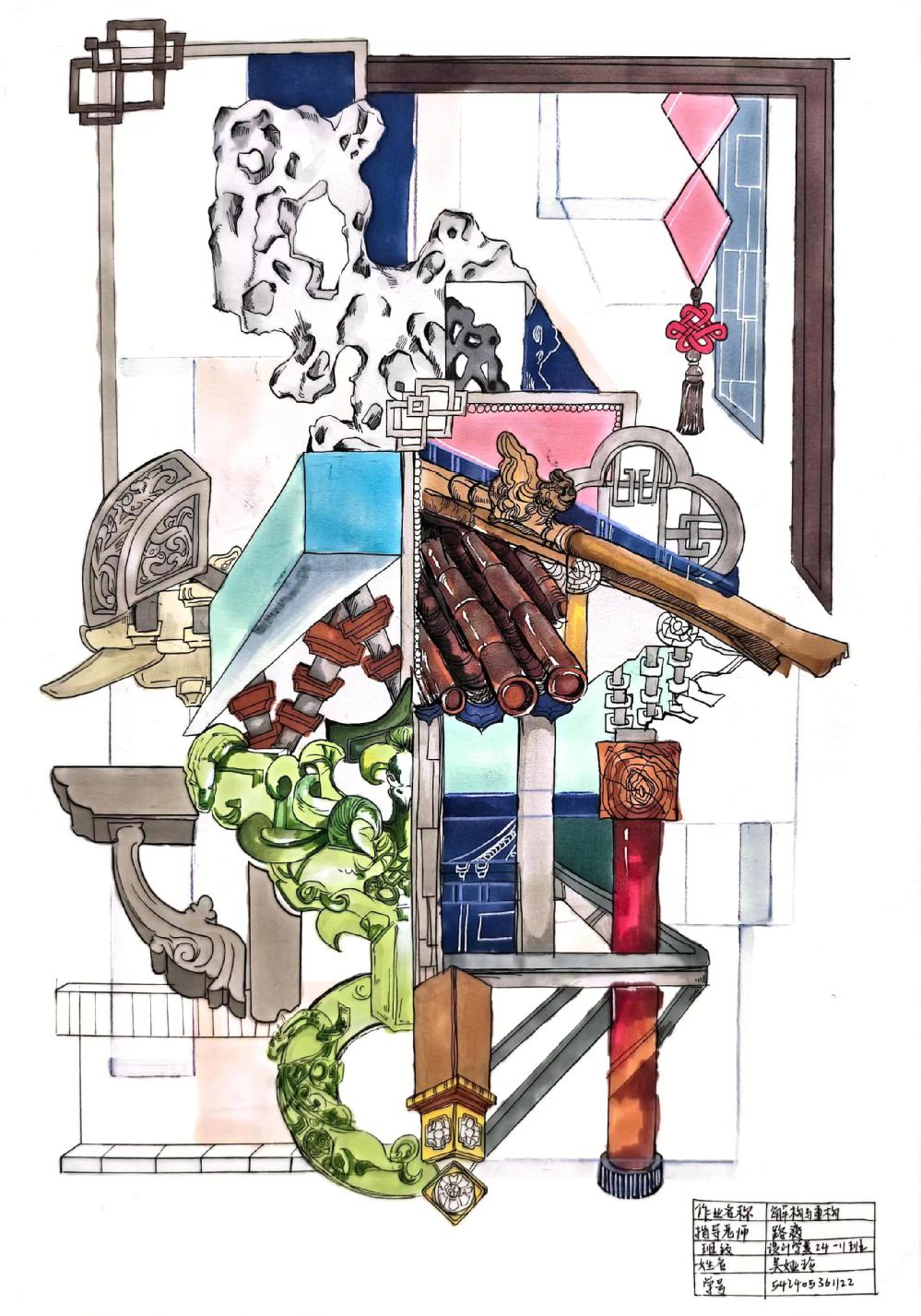 课题一:延续表象作业中选择的这一事物,基于对其前期的表与里的观察与分析研究,对其进行解构和重构(打散为单体、再重构)