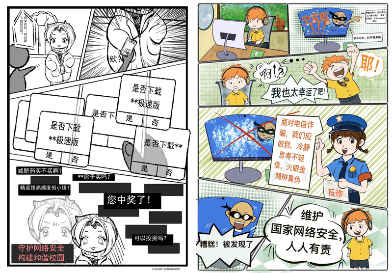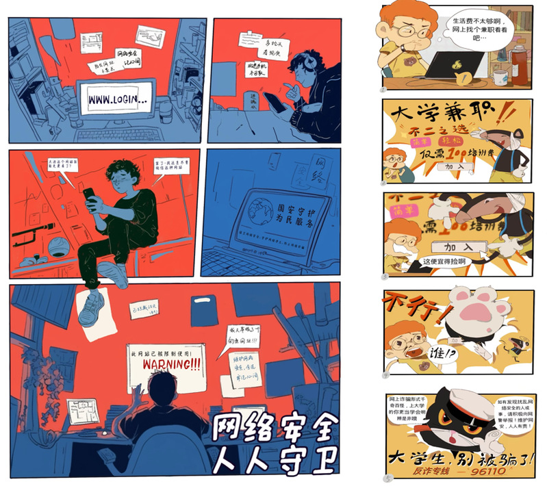 本次赛事以弘扬国家网络安全教育理念为核心,依托我院的专业优势,以漫画创意艺术手法,广泛传播网络安全意识,倡导大家自觉维护网络秩序。活动共征集到超过120件作品,每件作品主题突出、内容丰富、形式多样,充分体现了学生们深厚的专业技能和对网络安全教育问题的深刻洞察。