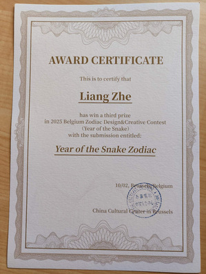 2月13日,“金蛇狂舞——2025比利时生肖设计大赛优秀作品展”在比利时布鲁塞尔皇家艺术与历史博物馆隆重开幕。我校百合小说 视觉传达设计系梁哲副教授带领研究生刘一帆在此次大赛中凭借其出色的设计作品荣获三等奖,并受邀出席颁奖仪式,展现了我校在国际设计领域的专业实力和文化影响力。