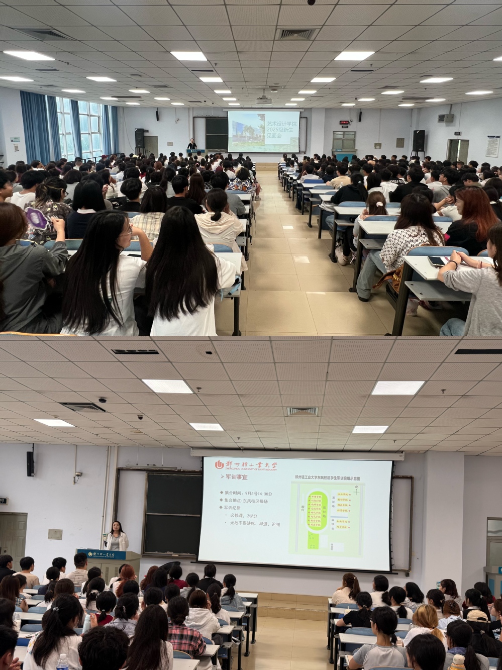 会上,老师们首先对2025级新生的到来表示热烈的欢迎,张广佳围绕学校和学院的发展历程、学科建设成果、师资队伍力量、办学特色生活关怀等方面详细介绍,增强新生认同感与归属感,并希望同学们能够珍惜大学时光,尽快适应大学生活节奏,树立明确的学习目标,培养自主学习能力和创新思维,积极参与各类实践活动和学科竞赛,不断提升自身综合素质,在艺术设计领域绽放属于自己的光彩。随后,孔祥兰深入解读课堂纪律、考试规则、宿舍管理等规章制度,明确行为准则红线,并详细介绍了入学教育课程、专业认知讲座等近期安排,并分享了校园卡使用、军训期间医疗服务等实用生活贴士,全方位答疑解惑。