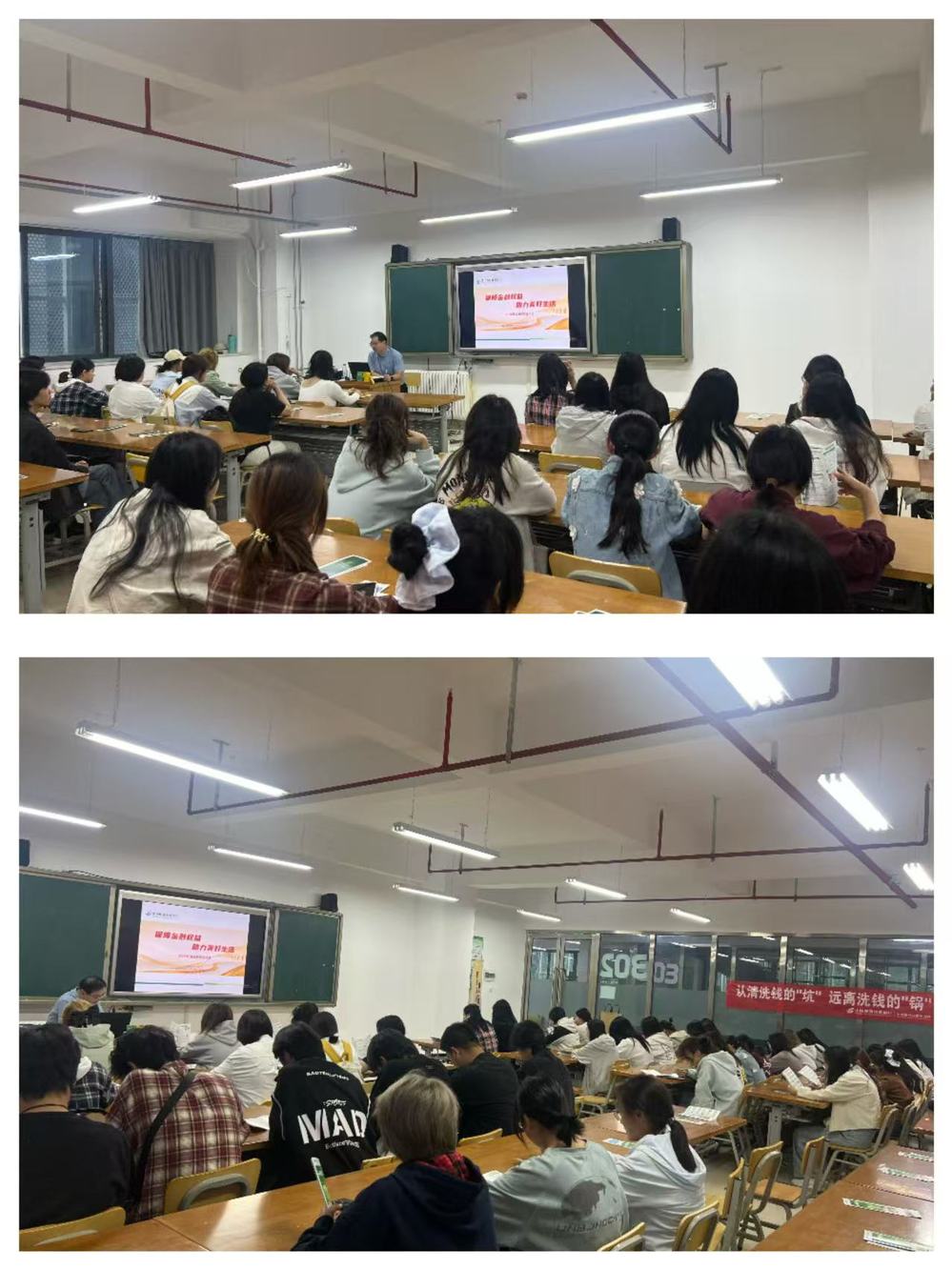 讲座伊始,刘经理结合案例通俗阐释了“校园贷”的定义,指出其看似便捷的借贷服务背后隐藏的陷阱。他重点剖析了校园贷的多重危害,从高额利息导致的经济负担,到暴力催收引发的人身安全威胁,再到个人信息泄露带来的后续风险,用真实案例让新生直观感受其危害性。针对不良校园贷的常见问题,刘经理总结了“虚假宣传”“变相高息”“捆绑销售”等典型套路,提醒新生警惕“无抵押、低利息、秒到账”等诱惑性说辞。在“大学生如何科学面对校园贷”环节,他给出明确建议:树立理性消费观,避免超前消费;急需资金时通过学校资助渠道或正规金融机构解决;遇到疑似不良校园贷要及时向学校和警方求助。互动环节中,刘经理耐心解答了新生们的疑问。新生辅导员在总结时强调,希望同学们将所学知识转化为自我保护能力,远离不良校园贷。